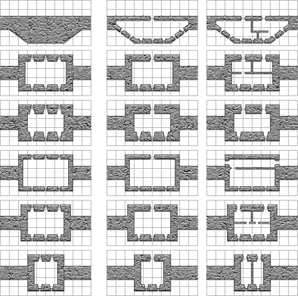 Working on series B castle geomorphs. It's all about 10x10 square sections for gatehouses.